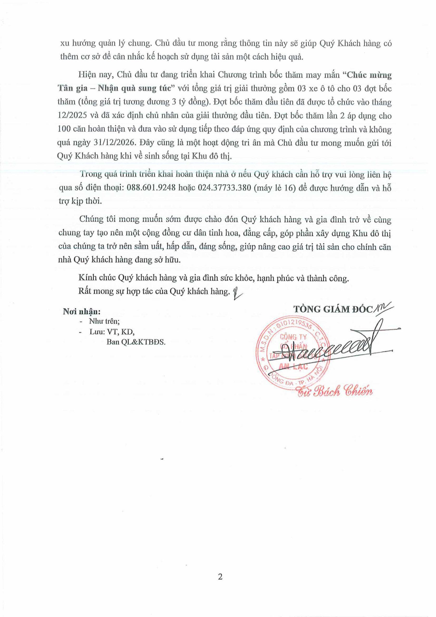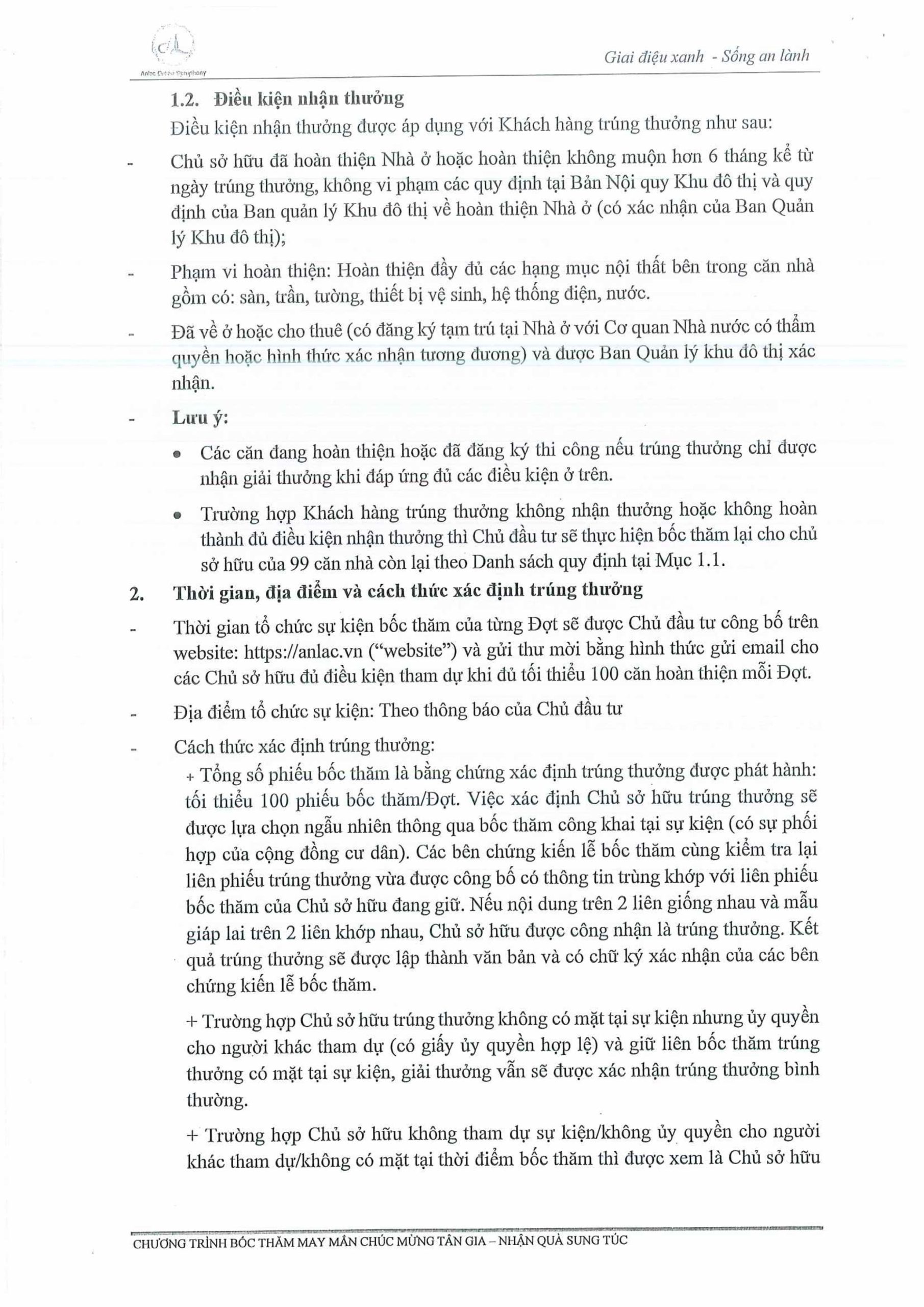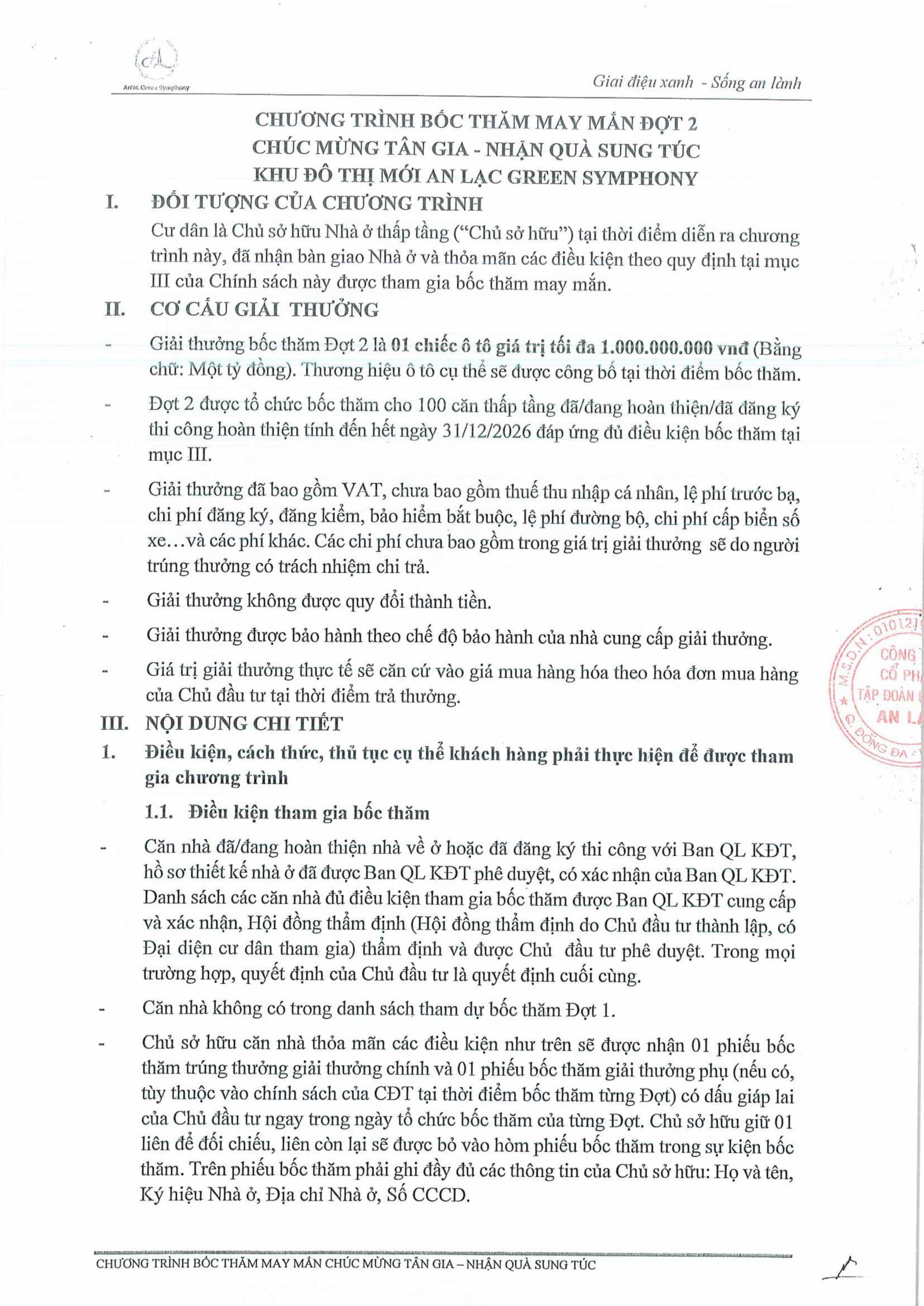 Tiếp nối thành công của chương trình bốc thăm may mắn “Chúc mừng Tân gia – Nhận quà sung túc” Đợt 1 trong năm 2025, Tập đoàn An Lạc tiếp tục triển khai Đợt 2 dành cho 100 căn nhà thấp tầng tiếp theo tại Khu đô thị Anlac Green Symphony hoàn thiện và đưa vào sử dụng trong năm 2026, với điều kiện đáp ứng đầy đủ tiêu chí theo chính sách chương trình.